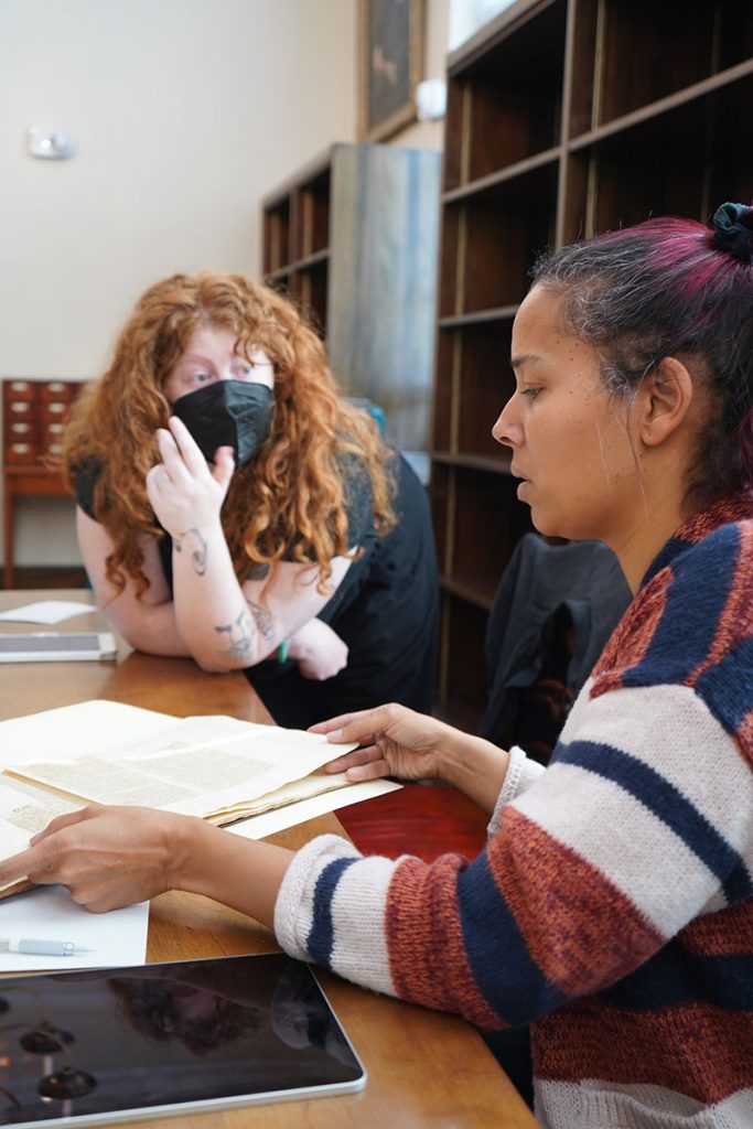 • Callie and Rhiannon in Wilson Library's Research Room.