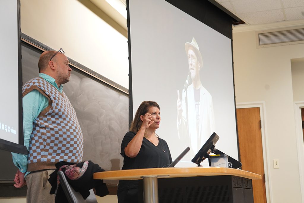 Rimini Protokoll artists Daniel Wetzel and Helgard Haug arrived in Chapel Hill two weeks before opening night. They did so in order to meet the show’s participants, direct rehearsals, explore the Triangle, and imbed themselves across campus as part of their CPA Southern Futures residency. They visited two classes, one in Communications and one in American Studies, meeting students and sharing about their practice.