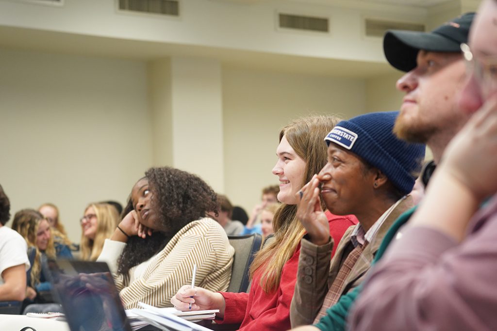 Daniel and Helgard spent a morning with the students of Professor Michelle Robinson’s AMST 101: This Place Called America. Professor Robinson described the class as a multidisciplinary examination of American Culture, focused on (in the words of fellow American Studies professor Dan Cobb) “the many and often times conflicting ways in which “America” manifests as a lived experience.” Given that 100% The Triangle aimed to depict what life is truly like in the region, this class and the performance were a well-made match. In addition to teaching the students about their 100% City project, Daniel and Helgard also shared about their larger practice, walking the class through previous and current works, discussing themes, and taking questions. This class visit occurred during the week leading up to performances of 100% The Triangle, and the show was still a few participants shy of the 100 needed to fully represent the region. A handful of students from AMST 101 expressed interest in participating in the show, and two of them ended up joining the cast by the end of the week.